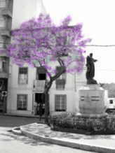L a espectacular belleza del color lila entremezclado con los naturales verdes de la jacaranda que florecía en uno de los extremos de la Alameda, detrás del Santo al que daba sombra y frescura, engalanándolo con irrepetibles mantos del color de las estaciones, era una de las preciosas vistas que ofrecía esta plaza al paseante.Mirarla en cualquier tiempo, era contemplar en un todo las fachadas del inicio de la calle de la Cruz hasta la Torre de la Trinidad, con el contraste perfecto del bronce del monumento y sus flores. Era algo maravilloso el punto que daban sus ramas al entorno, recordando el esplendor perdido. Disfrutarla en esta época con sus grandes racimos de flores azuladas, que sobrepasaban la cabeza misma del Creador, es algo que no podremos hacer ya más: ha desaparecido para siempre, arrancadas sus raíces por operarios municipales en cumplimiento de una orden que presumimos arbitraria y de mal gusto, a pesar de haber oído por ahí que la causa podía ser la molestia que ocasionaba a alguien de Coín o no sé qué extraña enfermedad. Sorprendente excusa para los vecinos de este rincón coineño, cuando todos los días la hemos visto gozar de extraordinaria salud y fortaleza, a más de un espléndido aspecto que, a los que tuvimos el placer de gozar de su compañía, siempre nos alegraba la vida y la vista. Y si fuera verdad que estaba enferma, razones mínimamente "humanitarias" hubieran aconsejado su tratamiento y cura, nunca un desahucio tan cruel. Debemos preocuparnos porque los políticos empiezan cortando un árbol y pueden acabar enterrando un río, demoliendo casas y edificios monumentales, "arreglando" fuentes y machacando la palabra y la opinión, y claro, esto puede acabar muy mal para todos y para lo mejor que queda de Coín. Sirvan estas líneas de recordado homenaje al ejemplo de la jacaranda del Santo de la Alameda, que por haberse mantenido siempre callada y discreta, ha sido condenada a muerte para no salir nunca más en la foto. Coín, junio de 1998. |
